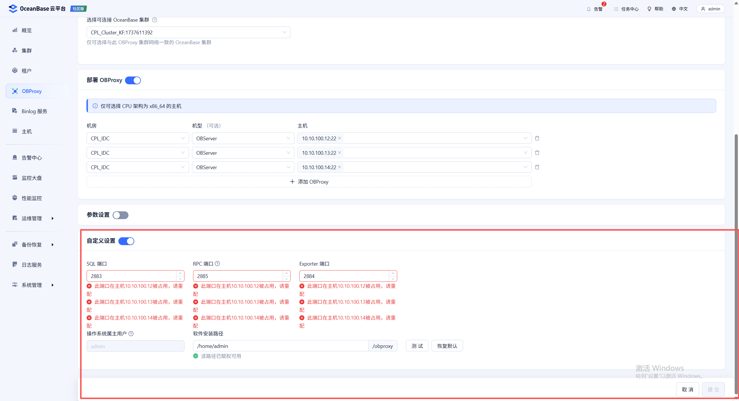 老师您好,我原来在我的10.10.100.11机器上安装了OCP,在10.10.100.20机器上安装了OBProxy,因为我的OBProxy机器,需要重装系统,会导致OCP不可用,我就考虑的将OCP应用进行重装,将OBProxy安装到另一台没有使用的10.10.100.17机器上。