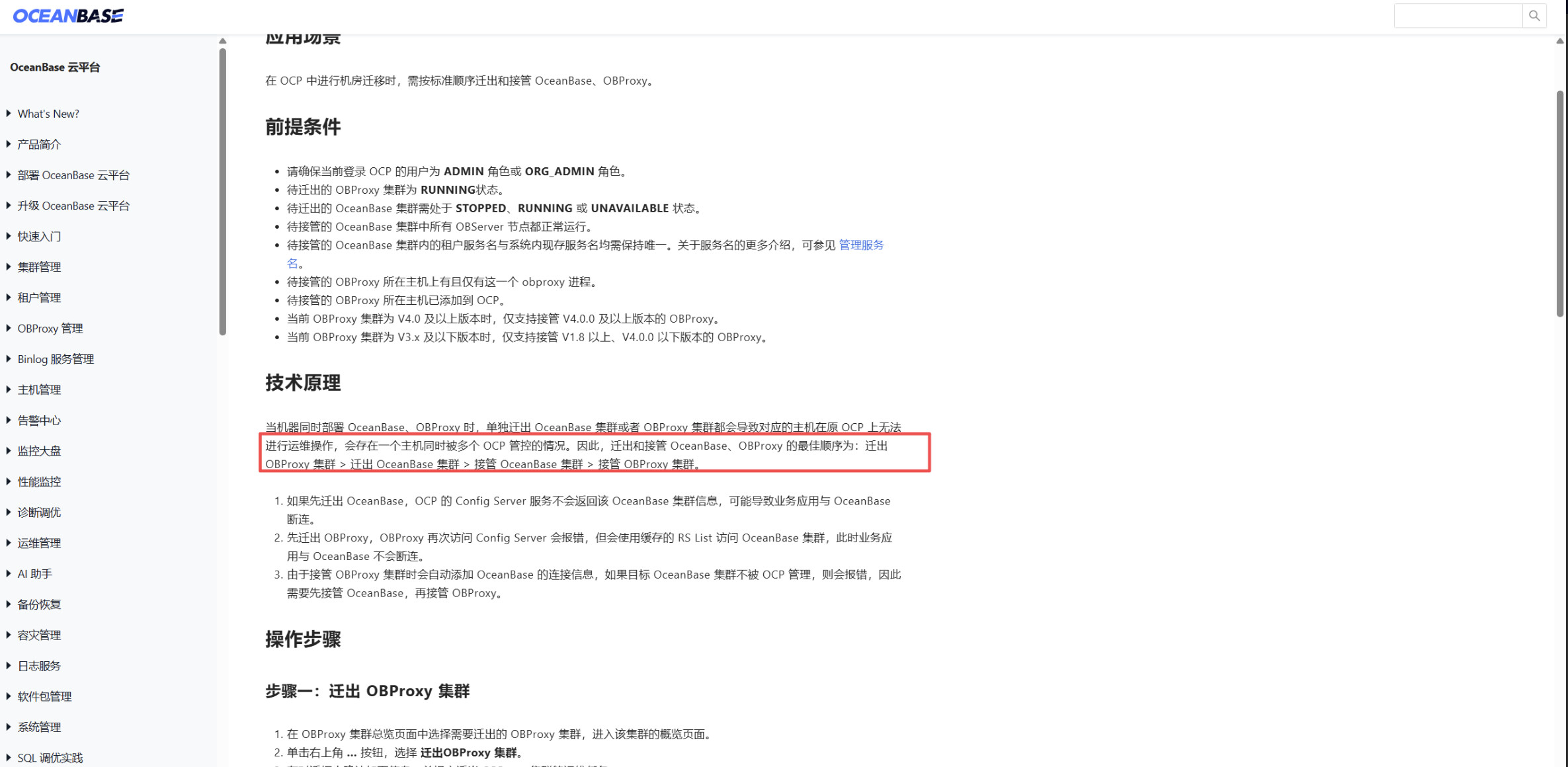 官方文档中迁出和接管 OceanBase、OBProxy 的最佳顺序来操作的:迁出 OBProxy 集群 > 迁出 OceanBase 集群 > 接管 OceanBase 集群 > 接管 OBProxy 集群。