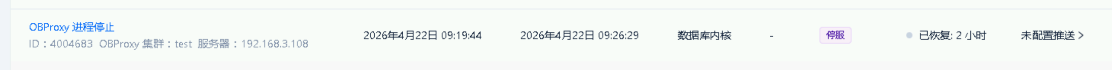 [2026-04-22 09:19:19.455480] INFO [PROXY] kill_this (ob_client_vc.cpp:1232) [3539101][Y0-00007B631F9DE680] [lt=0] [dc=0] mysql client will kill self(this=0x7b631f9dbd30, is_inited_=true, in_use_=false, info_={user_name:“detect_user”, database_name:“obproxy”, cluster_name:“obproxy”, request_param:{sql:"", is_deep_copy:false, current_idc_name:"", is_user_idc_name_set:false, need_print_trace_stat:false, target_addr:, ob_client_flags_.flags_:0, client_vc_type:0}}, server_addr_={is_physical:true, addr:{config_string:""}, port:0, ip_endpoint:{Not IP address [0]:0}}, retry_times_=0, magic_=2864434397, thread=0x5eeb8df07450)